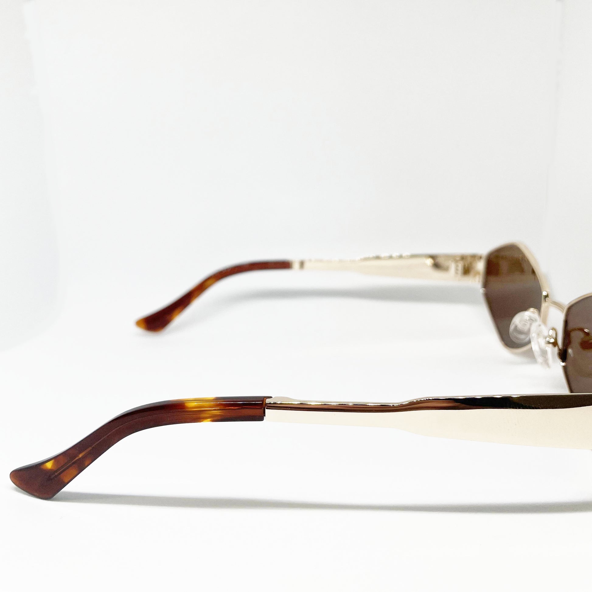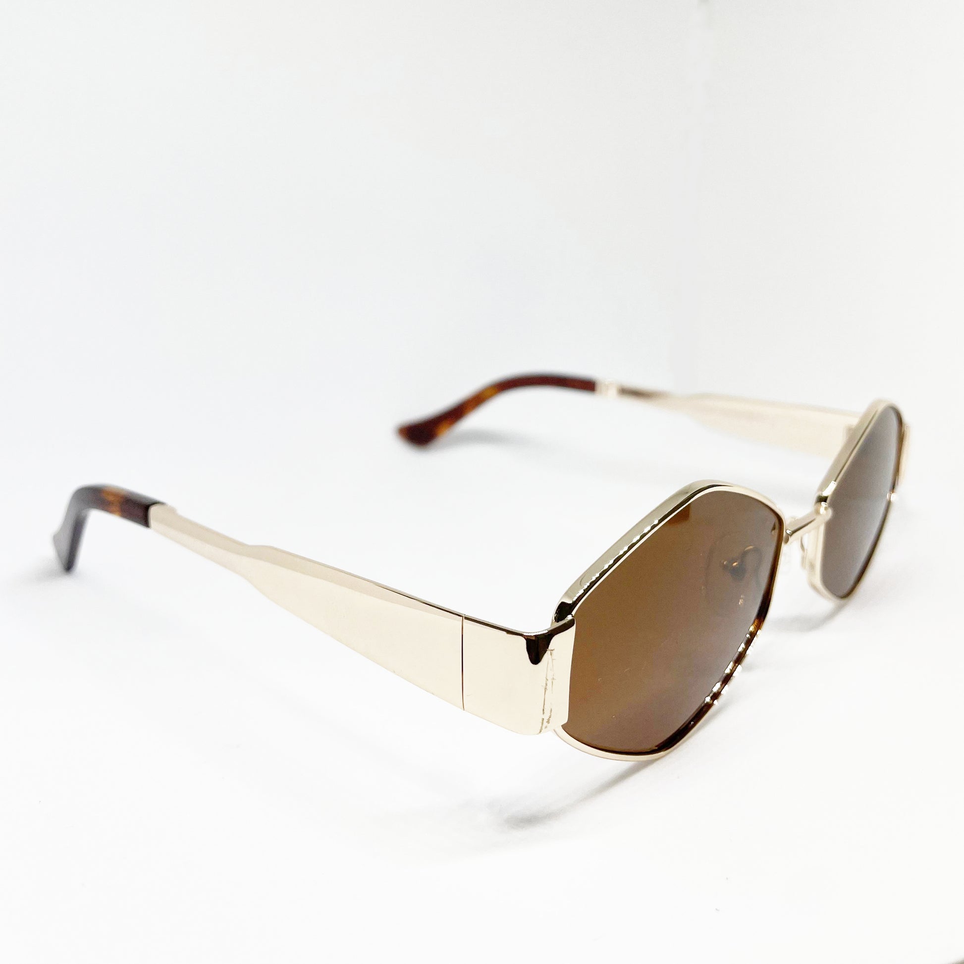 Ember è un occhiale da sole che emana calore e personalità. Le lenti esagonali terra bruciata donano intensità e profondità allo sguardo, mentre la montatura dorata completa e le stecche affusolate nello stesso tono creano un effetto armonioso e di grande presenza. I terminali tartarugati e il nasello dorato completano il design, unendo comfort e carattere in un modello distintivo, pensato per chi ama uno stile raffinato, deciso e senza tempo.
