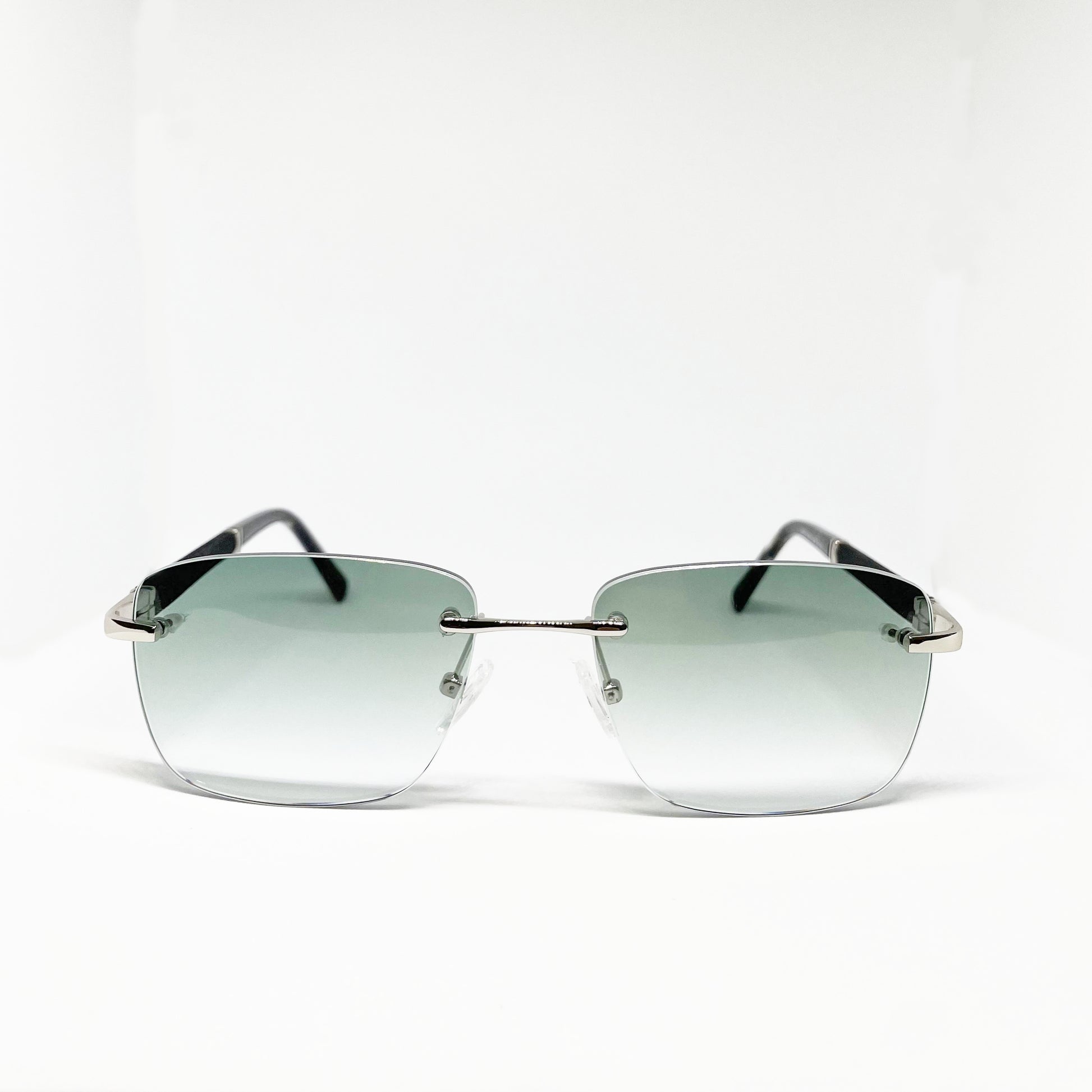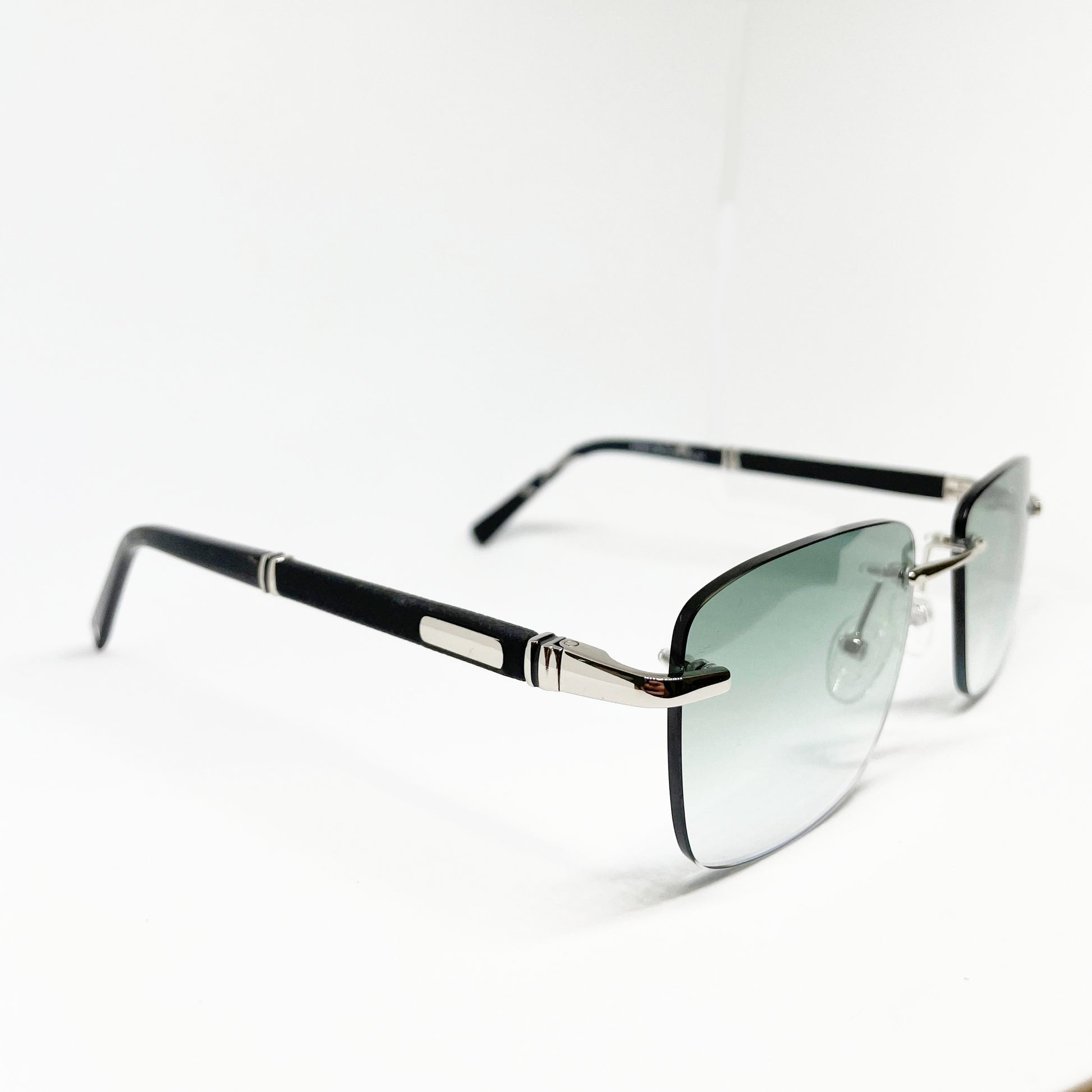 Occhiale da sole dal design minimalista e sofisticato, con lenti verde bosco sfumate che catturano la luce e valorizzano lo sguardo con un effetto naturale e raffinato. La struttura rimless, leggera ed elegante, è arricchita da sottili dettagli dorati che conferiscono un tocco premium, mentre le stecche in cellulosa rivestite in ecopelle nera con terminali tartarugati garantiscono comfort e stile. Un modello distintivo, perfetto per chi desidera un accessorio moderno ma senza tempo.